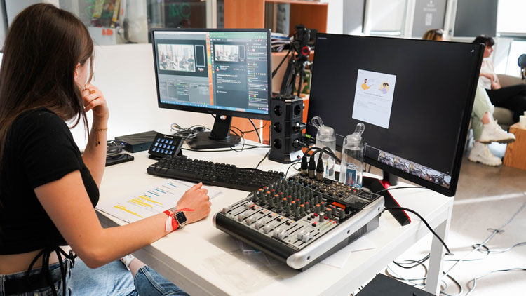 Lisa, Lucas, Manon, Mathilde, Maryanne et Thomas s'installent, le stream commence. Nos tout premiers viewers se connectent à la chaîne de Digital Campus. Le lancement de la première émission Twitch de Digital Campus est fait !