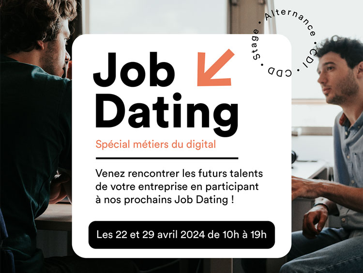 Le Job dating, c'est l'occasion idéale de partager vos offres et de rencontrer des étudiants de niveau Bac+2 à Bac+5, passionnés par les métiers du digital et prêts à relever de nouveaux défis.
