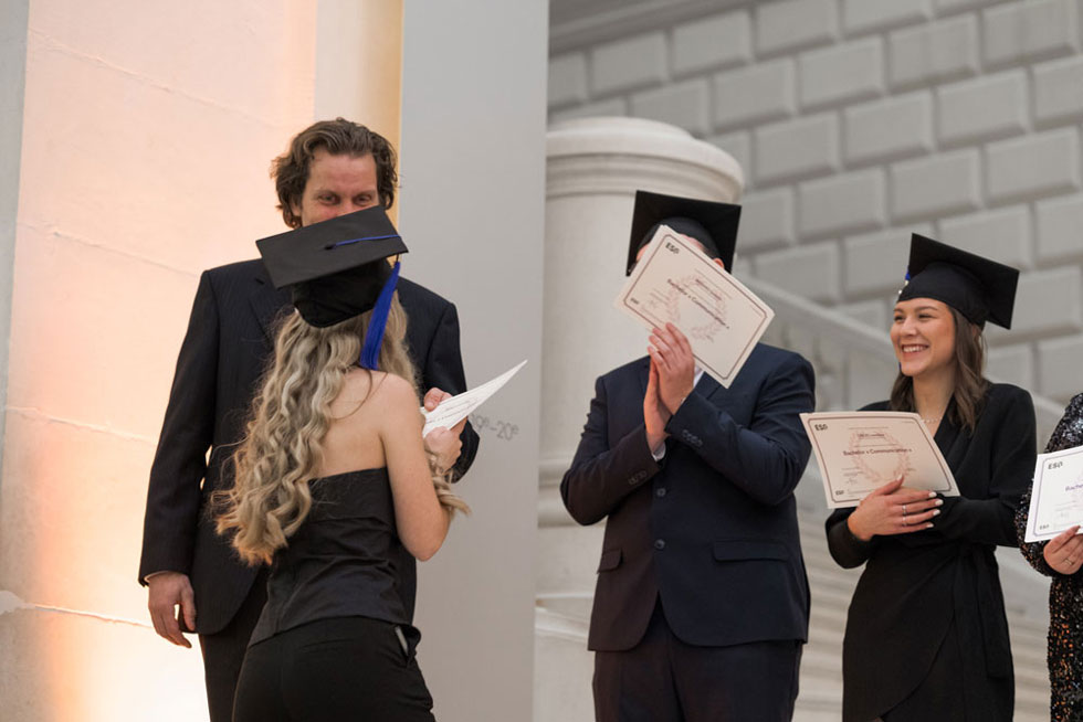 À la suite de la visite, Barbara Bertrand ; directrice du campus a pris la parole lançant officiellement la Cérémonie de Remise de Diplômes. Après plusieurs remerciements et surtout un mot de félicitations adressé aux étudiants, ces derniers ont été appelés 1 par 1 afin de venir récupérer leur diplôme sur scène.