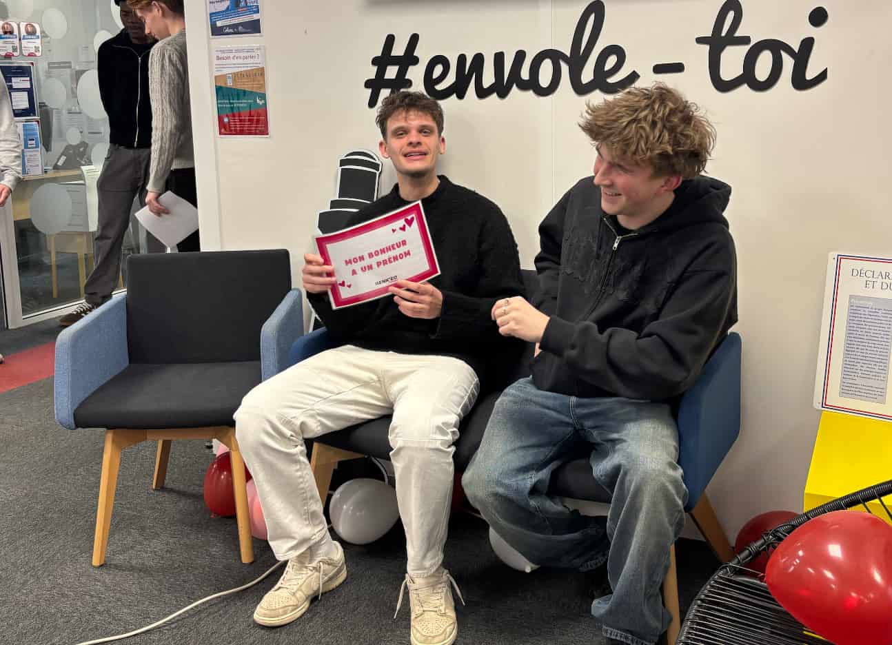 La seconde animation était un photobooth du love, installé pour immortaliser ce moment. Les étudiants pouvaient poser avec différentes pancartes humoristiques : « Célibataire », « Pas désespéré.e » ou encore d’autres messages amusants.